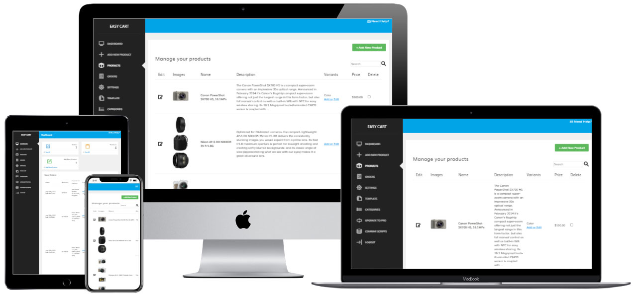 Build your own online store with Easy Cart – a powerful PHP shopping cart script that doesn’t require a MySQL database. All data is stored in fast and flexible XML files. Add products, create variants, manage orders, and accept online payments – all from a simple, modern interface.
