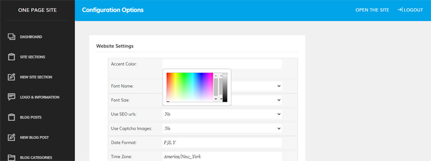El sistema de plantillas flexible te permite personalizar totalmente el diseño o integrar nuevos estilos para que coincidan con tu marca. One Page Site es la solución perfecta para cualquiera que busque lanzar una web de una sola página limpia y eficiente.