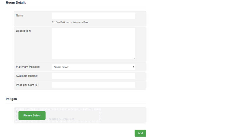 El administrador puede editar tipos de habitación existentes o añadir nuevos, definiendo la descripción, el número máximo de huéspedes, la cantidad de habitaciones disponibles y subiendo fotografías de alta calidad.